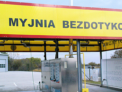 Szyld z poliwęglanu wokoł myjni bezdotykowej.